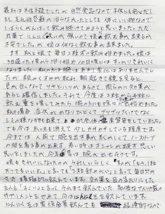 毛孔性苔癬にお悩みのお客様から、お手紙を頂戴しました。